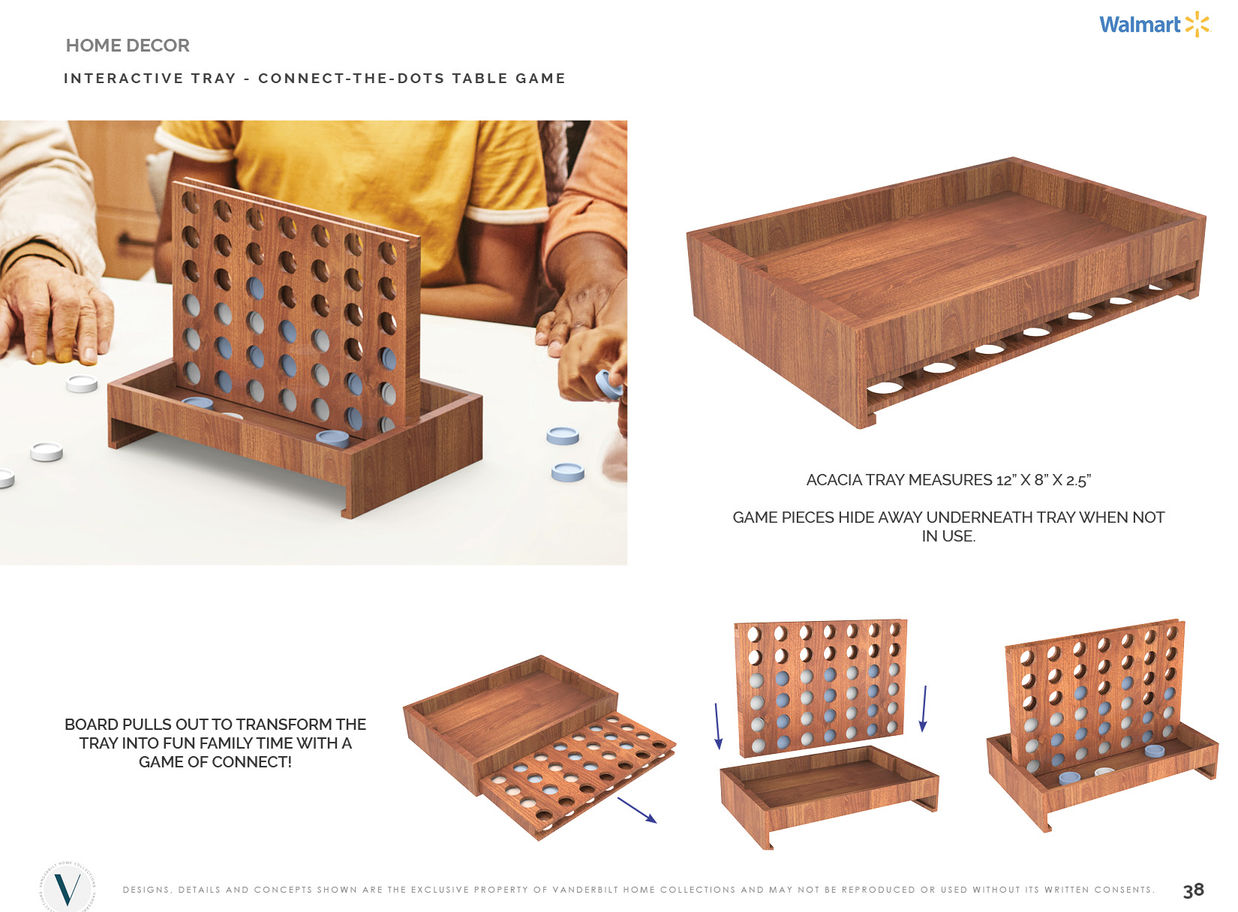 This was a project I completed in April 2024 showcasing designs specifically for Walmart's home decor aisle. The goal was to bring high-end designs to a Walmart price point. While designing, considerations of material choice, complexity, and labor costs were taken to help keep the manufacturing cost viable.